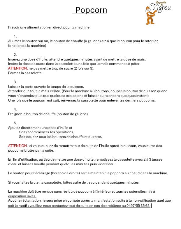 • Si la location est pour un samedi, la reprise du matériel se fera le lundi.